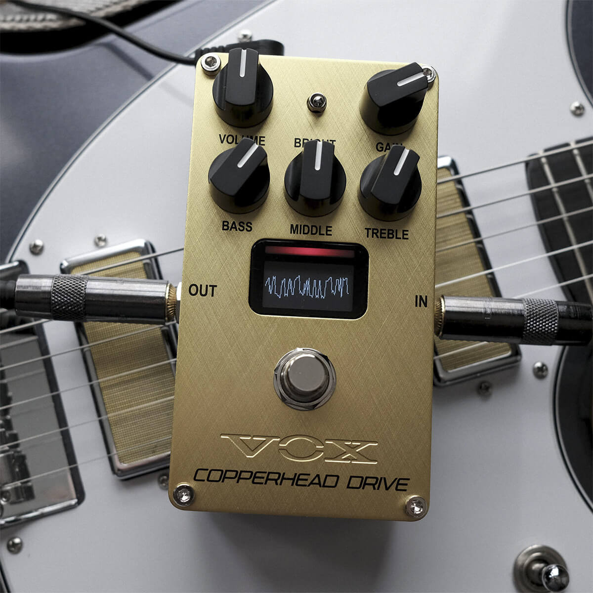 The VOX Copperhead Drive pedal puts massive arena crunch tones reminiscent of British full stacks right on your pedalboard. It can be used as a pedal, a preamp or an amp in a box. It’s NuTube technology gives you that tube sound without all the drawbacks of conventional tube technology.