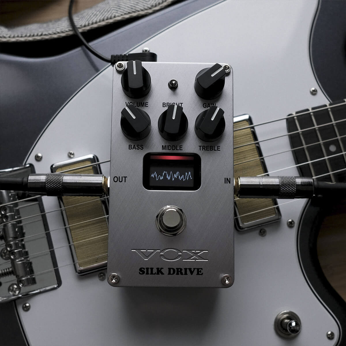 The VOX Silk Overdrive Pedal delivers the boutique-style tones in an overdrive pedal and can be used as a pedal, a preamp, or an amp in a box. It’s NuTube technology gives you that tube sound without all the drawbacks of conventional tube technology.